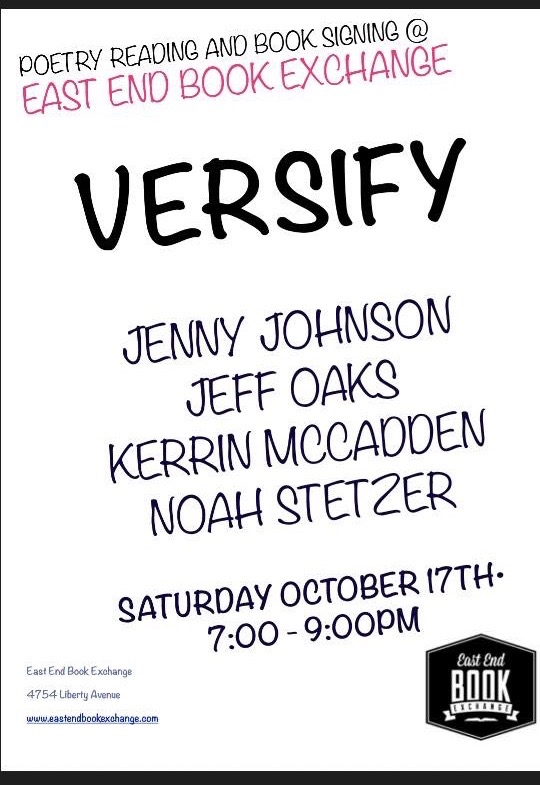 Grateful to have been invited to read with Jeff Oaks, Kerrin McCadden, & Jenny Johnson at the East End Book Exchange in my hometown: Pittsburgh, PA.