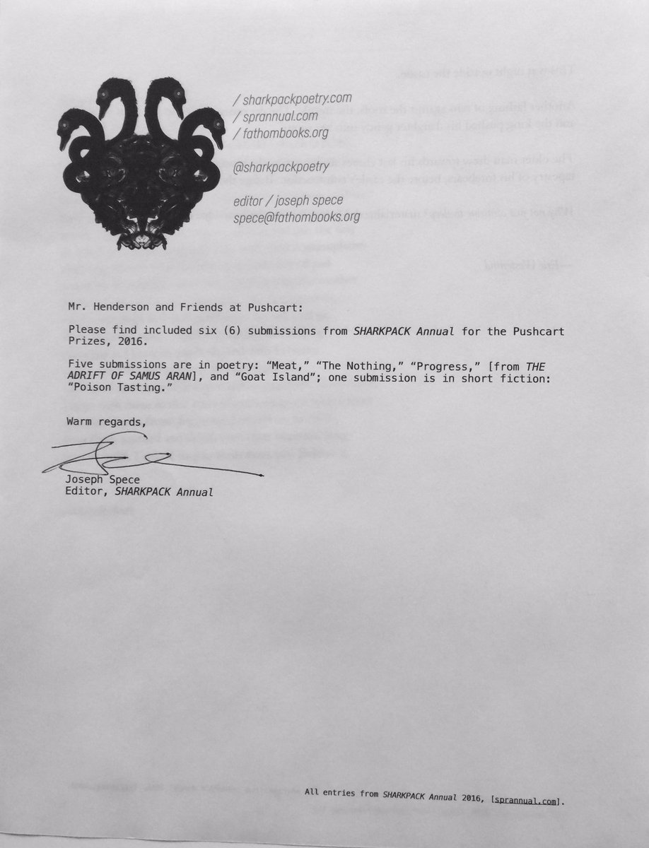 happy to announce that Sharkpack/FATHOM has nominated “The Nothing” for a 2017 Pushcart Prize