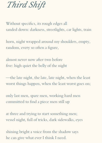 You’ve arrived at the third issue of SHARKPACK Annual, themed ‘The Night.’ The Annual is creative sister to SHARKPACK Poetry Review and to Fathom Books.